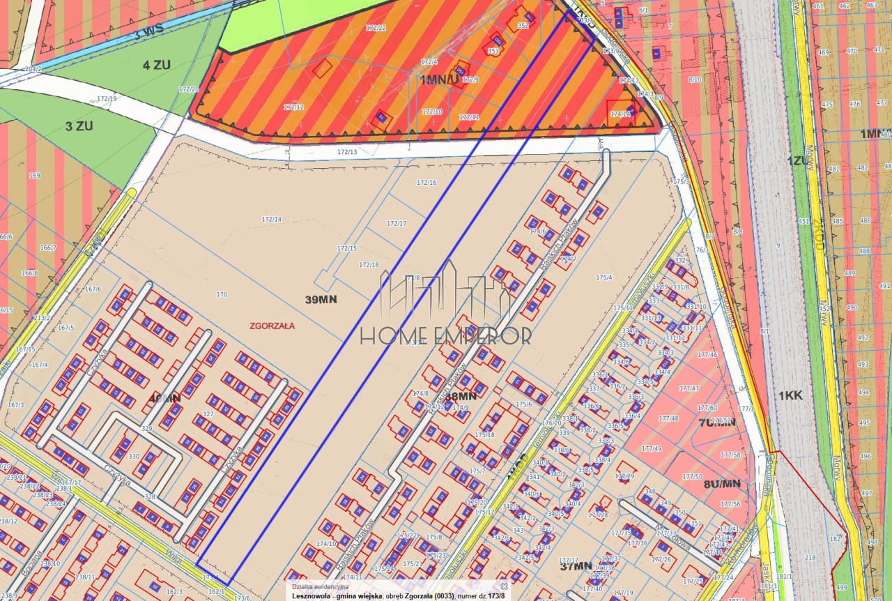 Działka jest objęta miejscowym planem zagospodarowania przestrzennego pod tereny zabudowy mieszkaniowej jednorodzinnej i usług (symbol 39MN - na powierzchni około 10900 m2) oraz pod tereny zabudowy mieszkaniowo - usługowej, w tym usług publicznych - budynki mieszkalne jednorodzinne, budynki usługowe, budynki funkcji mieszanych (symbol 1MN/U - na powierzchni około 2940 m2):