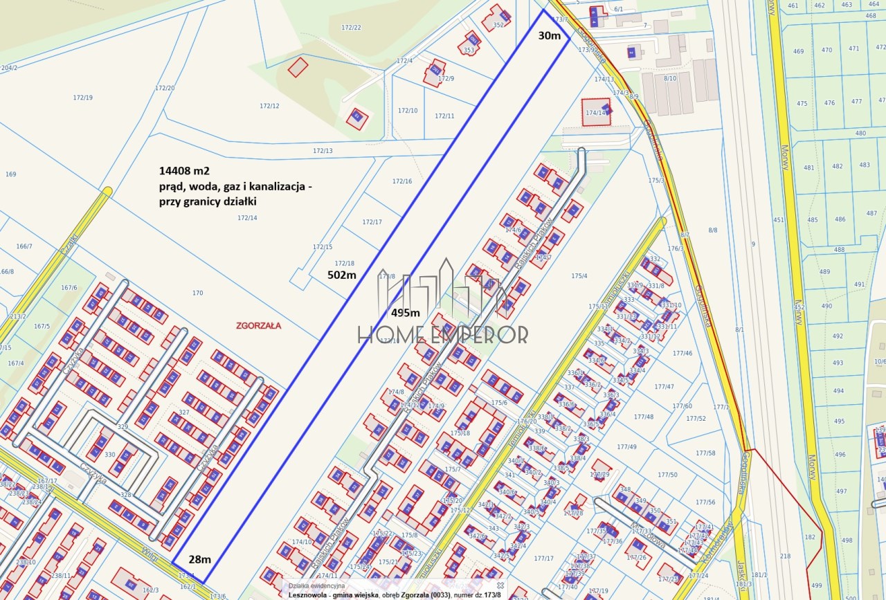 Prąd, woda, gaz i kanalizacja - przy granicy działki