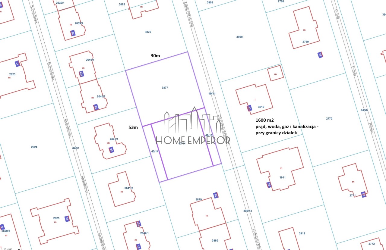 Prąd, woda, gaz i kanalizacja - przy granicy działek