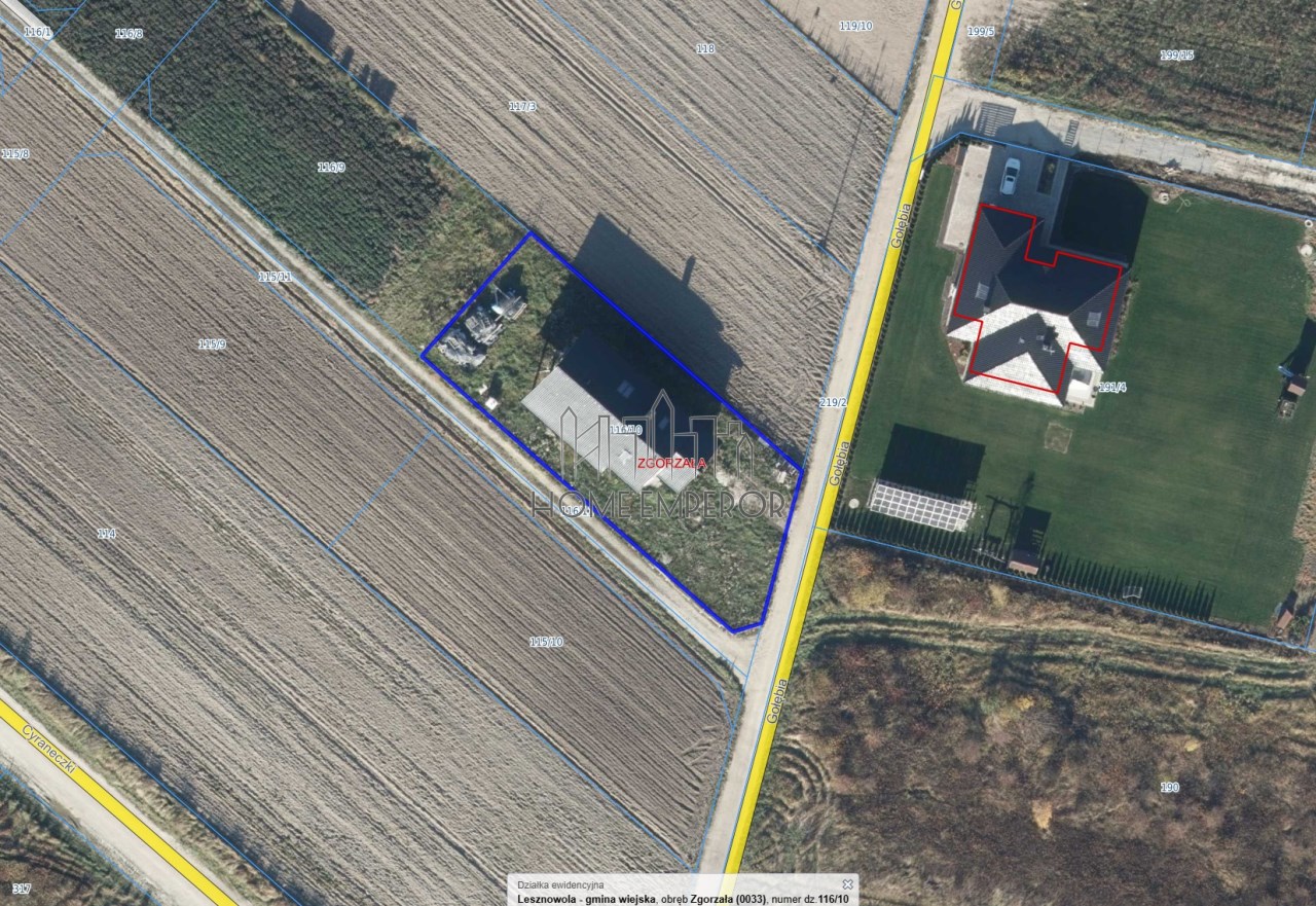 Teren zabudowany wolnostojącym domem jednorodzinnym w stanie surowym.