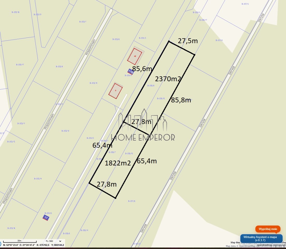Numer ewidencyjny 206/8 + 206/16 - trzecia linia zabudowy 2370m2 za 100zł/m2 tj. 237.000 zł
