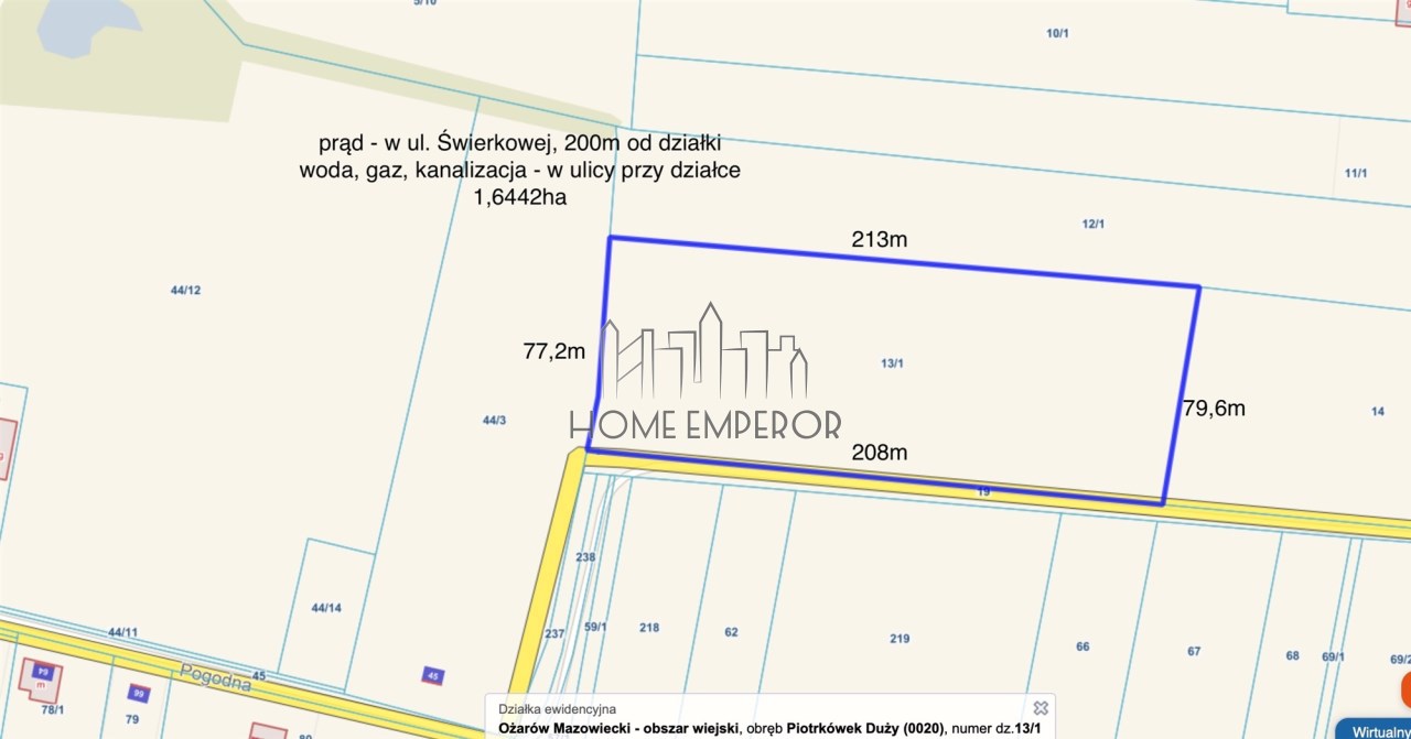 prąd - w ul. Świerkowej, około 200m od działki