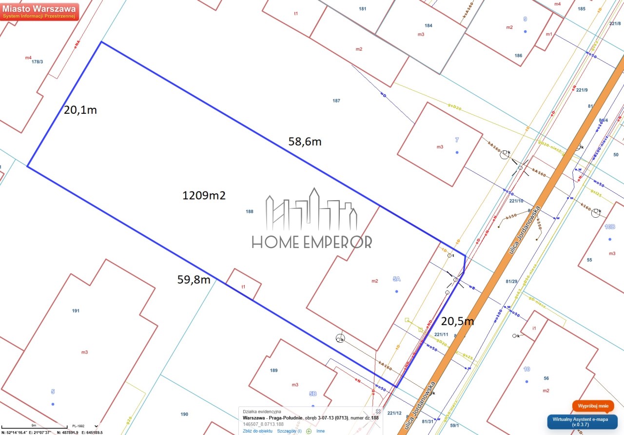 Wymiary działki 20,5m front x 58,6m x 20,1m x 59,8m