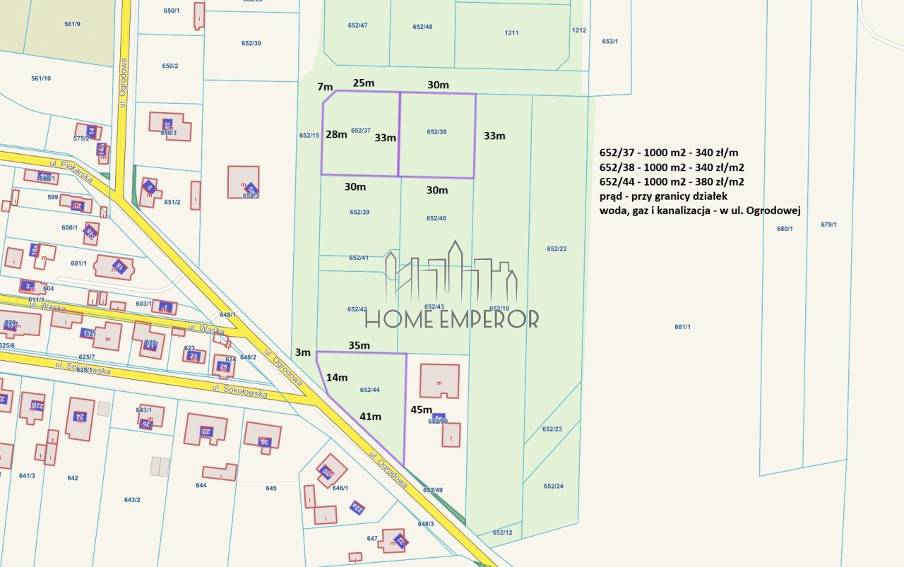 652/38 - 1000 m2 - 340 PLN/m2 - 30m x 33m