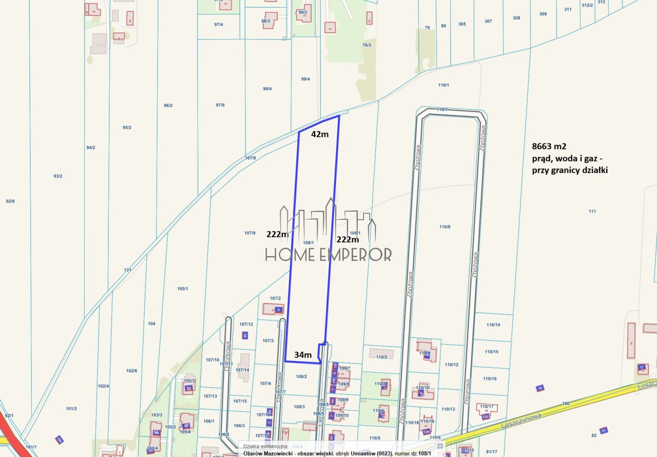 Działka znajduje się w odległości 6,8 km od stacji PKP Ożarów Mazowiecki oraz 1,5 km od szkoły podstawowej.