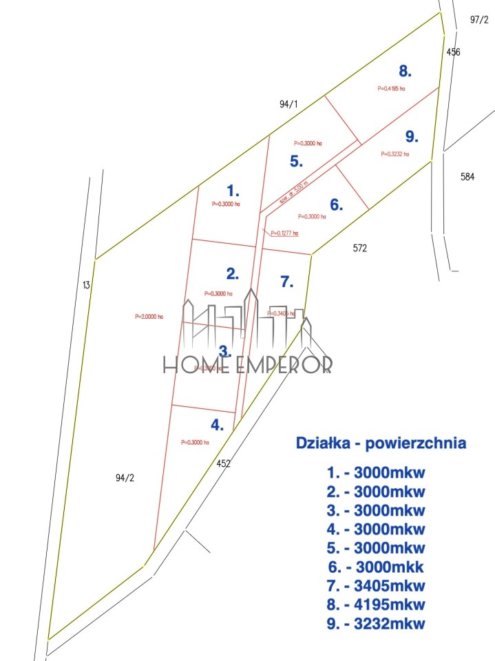 Działki w trakcie podziału z działki 94/2, do wykorzystania rekreacyjnego lub jako lokata kapitału na przyszłość.