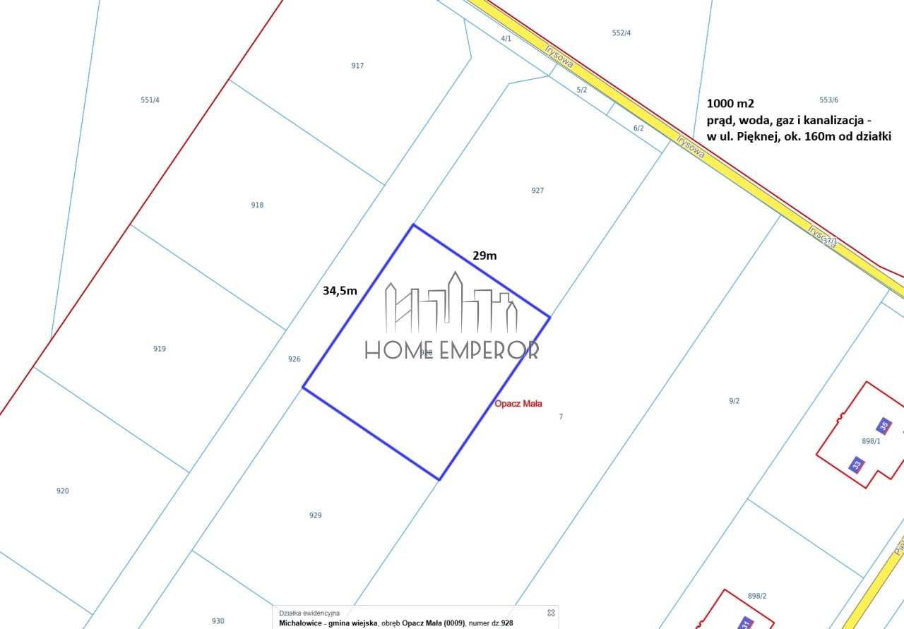 Prąd, woda, gaz i kanalizacja - w ul. Pięknej, około 160m od działki